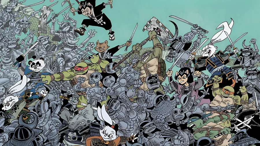 Usagi Yojimbo Leder En Hård Kamp Mod Mange Panserede Fjender I En Dynamisk Og Actionfyldt Scene Fra Tegneserien.